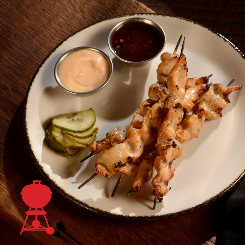 Skewers of tender marinated chicken and fresh vegetables cooked on a charcoal grill is a treat in cultures all over the world.