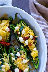 Goat Cheese Couscous Sun Dried Tomato Stuffed Poblano Peppers from wholeandheavenlyoven.com Pour over hot water, shake to level out couscous (chickpeas should mostly settle on top). Bring a large saucepan of water to a boil. Remove from heat and fluff up with a fork. Always good, very fresh and lasts well. Mix well and divide filling among peppers. Try your best not to over stuff. Fill peppers with beef mixture and sprinkle with cheese. You can secure the stuffing inside by tying breast with butcher twine.